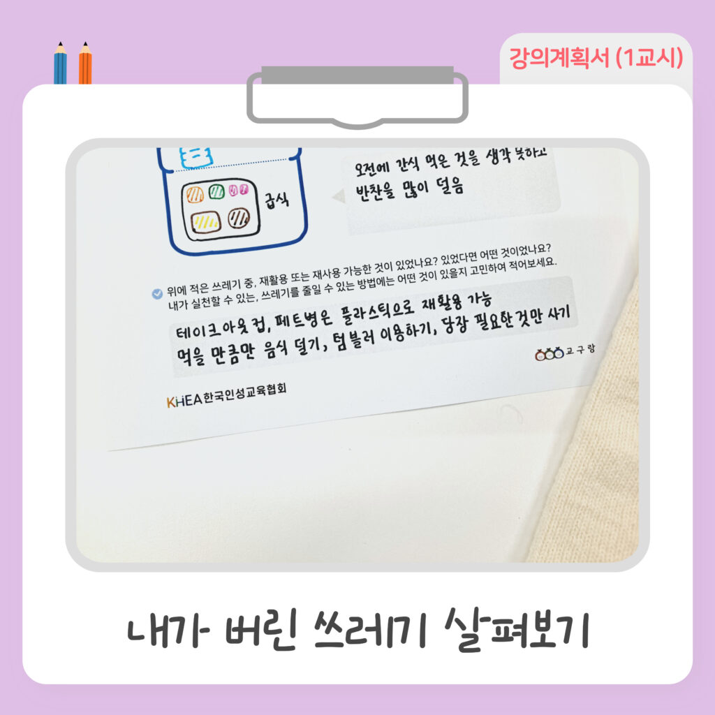 ☑️교육주제: 쓰레기 배출을 줄임으로써 일상에서 환경보호 실천하기