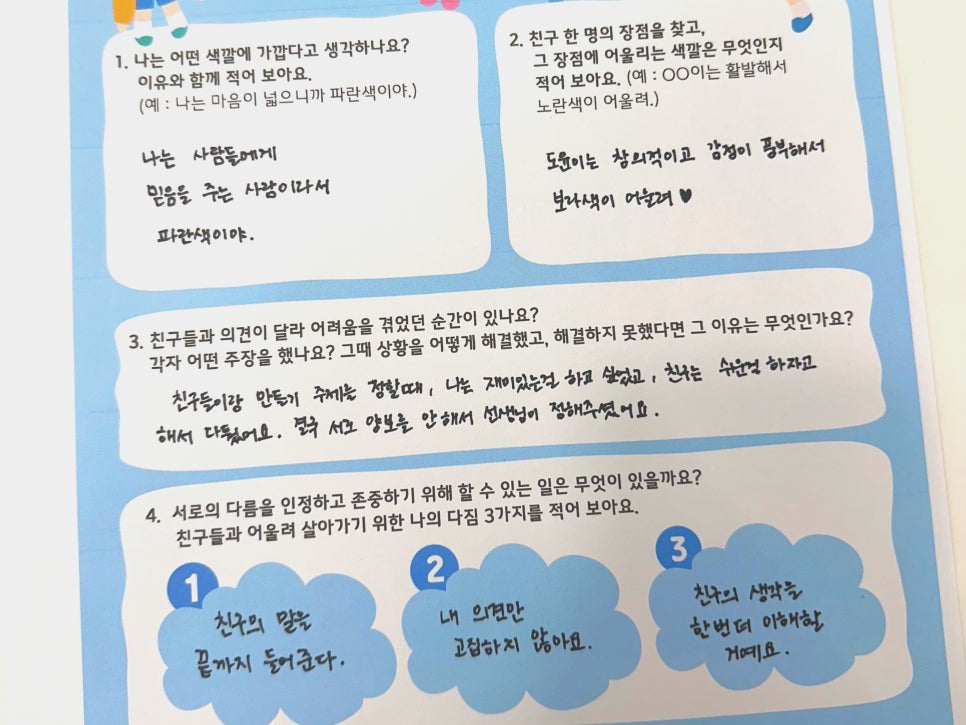 (3)친구와 다를 때 지켜야 할 약속(존중하는 행동)을 3가지 이상 말할 수 있다.