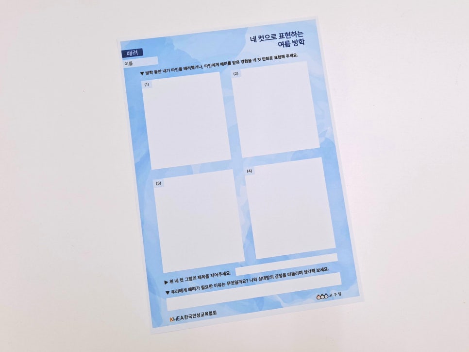 <네 컷으로 표현하는 여름 방학 [배려]> 활동지입니다:)