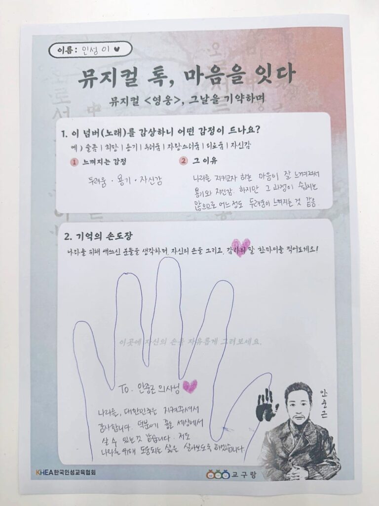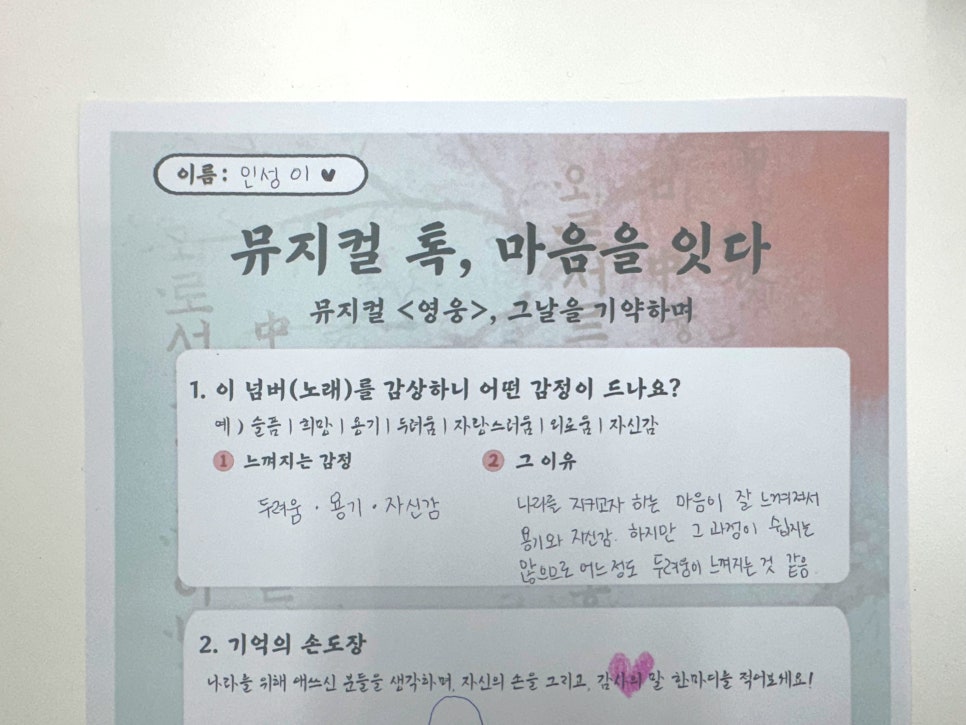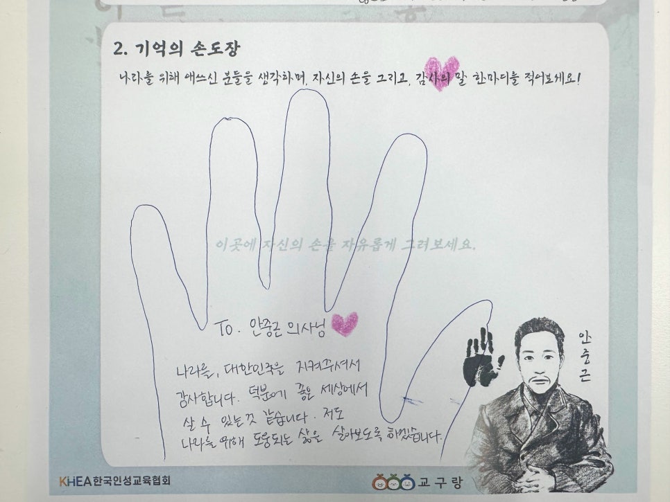 위 활동지는 이후 손도장과 메시지를 모아