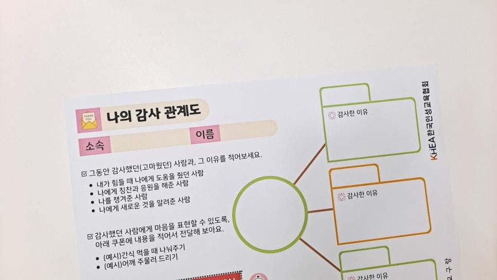 ๊ฐ์ฌํ ์ฌ๋๊ณผ ๊ฐ์ฌํ ์ด์ ๋ฅผ ์๊ฐํ์ฌ ์ ์ด๋ด